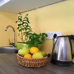 At the apartment there is a fully equipped kitchen which includes an electric kettle, a refrigerator, and kitchenware.